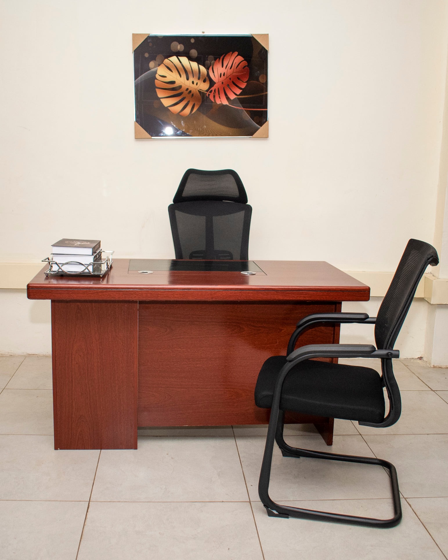 The Executive Office Table with Drawers in Nairobi, is a high quality Office Desk in our range of Office Furniture. The Office Table is available in our Showroom at the best price. The Office Desk is 1.2 long hence saves on office space with your organization. It is Mahogany in Color, has three lockable drawers and 1.2 meter long Executive Desk